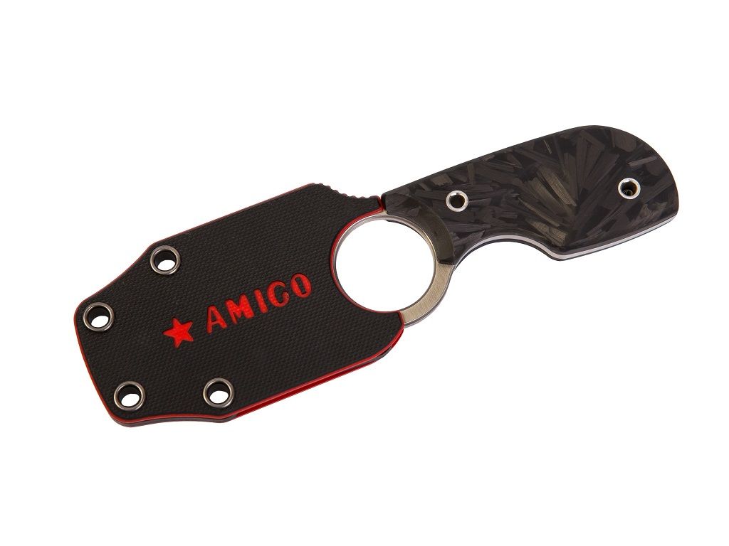 Во-первых, это вес изделия. Он настолько незначителен, что не доставляет неудобств при ношении на шее. Во-вторых качество материалов и изготовления. Клинок Амиго изготовлен из известной порошковой стали стали. Рукоять из карбона - легкий и крепкий материал для производства современных ножей. В-третьих, это дизайн шейников серии Amigo. Все ножи серии выглядят ненавязчиво и модно. Амиго не заостряет на себе внимание, немногие даже могут понять, что это нож на шее, а не безделушка.