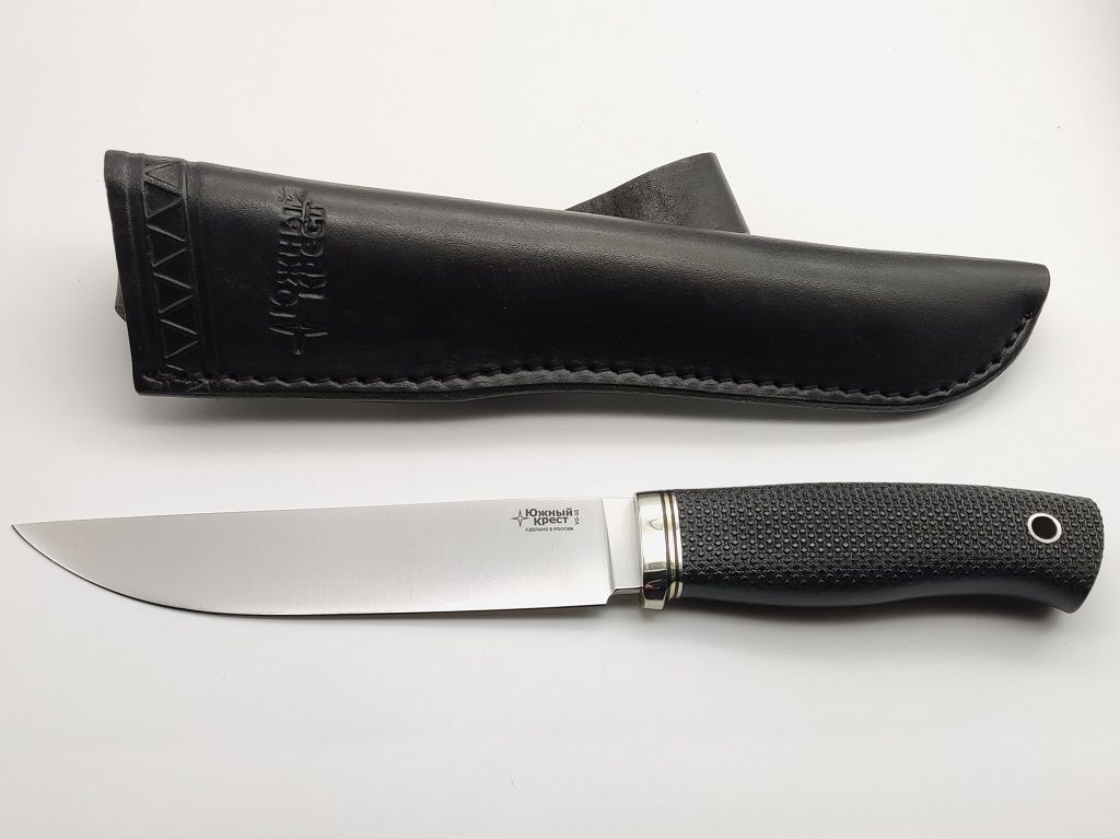 Нож Длинный Джек укомплектован качественными кожаными ножнами черного цвета. Предусмотрено два варианта ношения: свободный подвес и жестко на ремне. Ножны снабжены пластиковой вставкой для предотвращения пореза кожи. Имеется отверстие для отвода влаги и воды, попавшей в ножны в сырую погоду. Обязательным элементом дизайна является тиснение на коже логотипа Южный Крест.