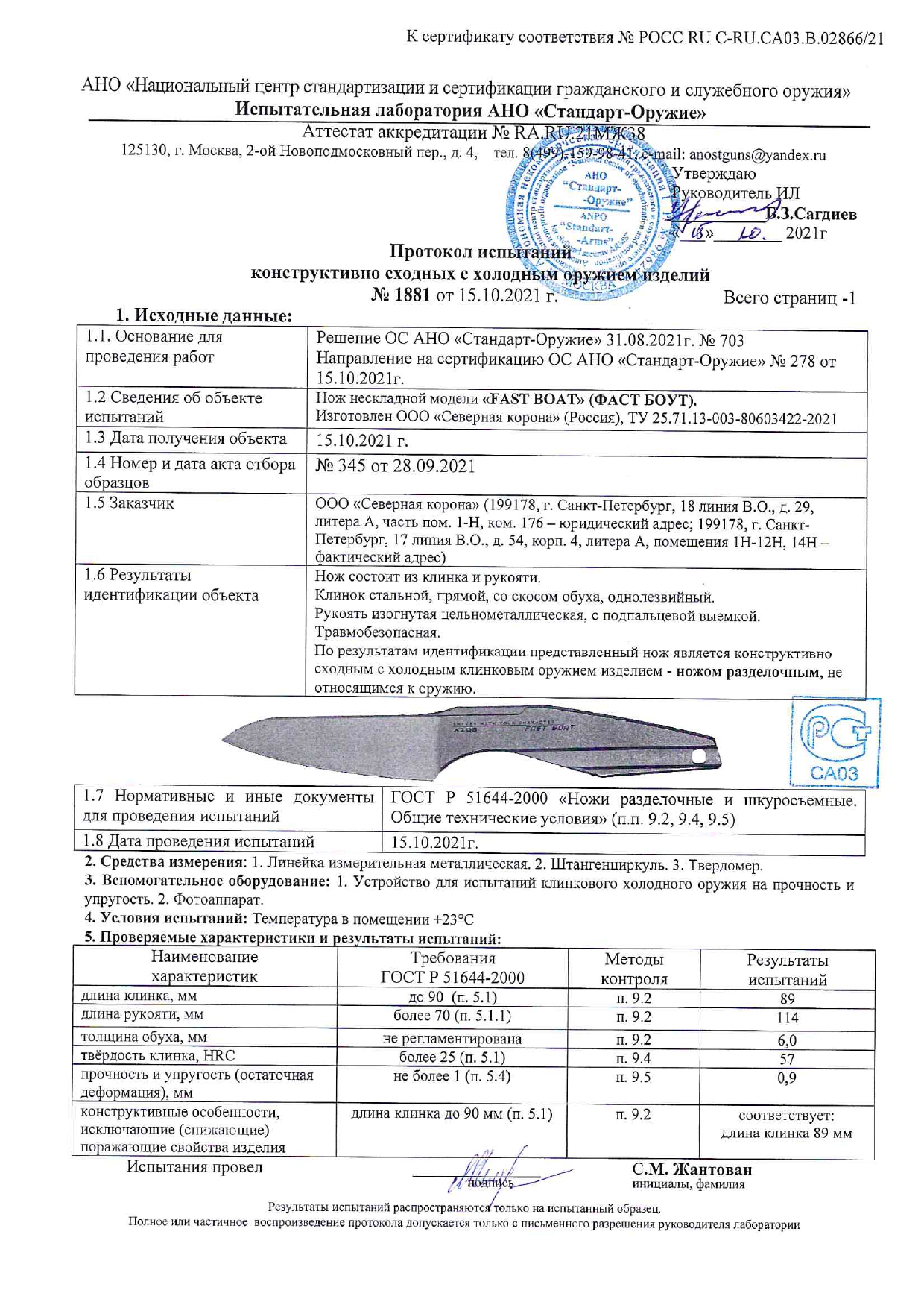 ОПИСАНИЕ НОЖА Fast Boat