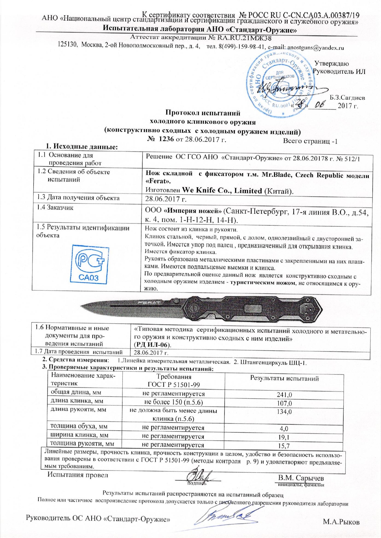 ОПИСАНИЕ СКЛАДНОГО НОЖА Ferat
