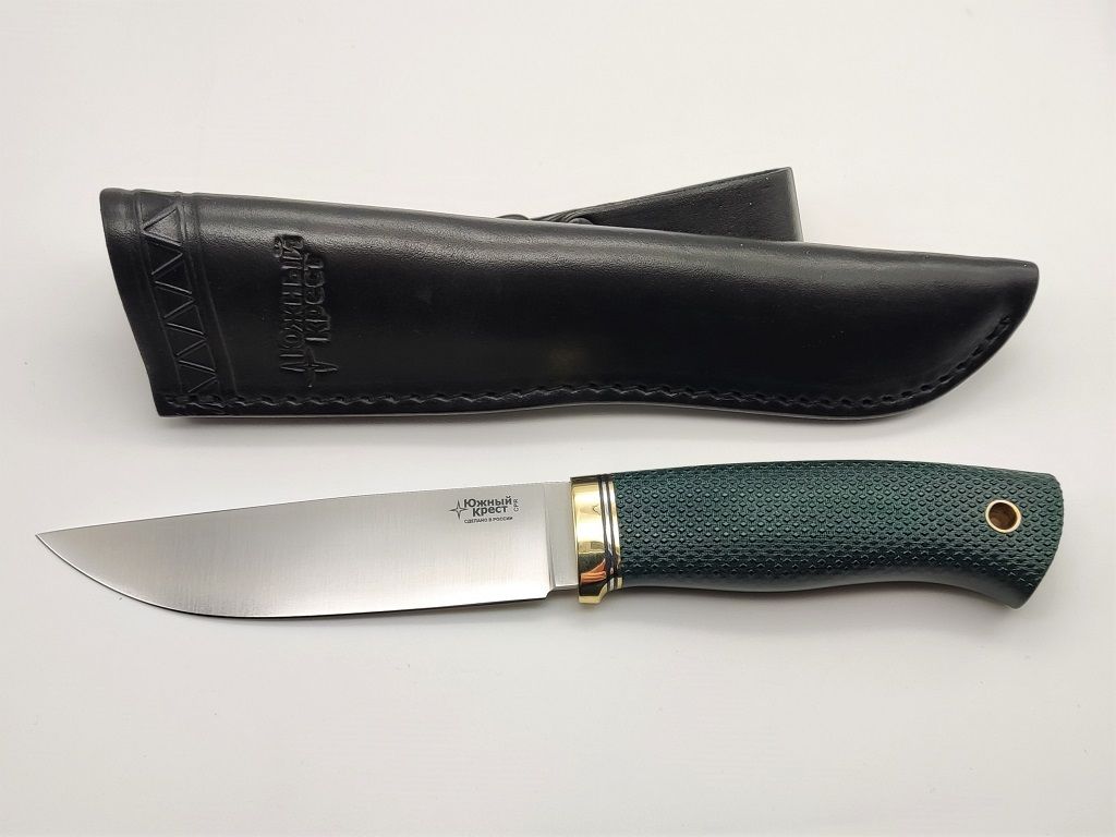 Micarta - отличный материал для рукояти ножа. Изготавливается из слоев ткани, пропитанной синтетическими смолами. Материал часто используется в электротехнике, больше известен как гетинакс. Легко обрабатывается и полируется. Микарта не впитывает воду, нейтральна к агрессивным средам, не меняет свойств при морозе и высоких температурах. Подбор цвета и дизайна микарты делает нож красивым и привлекательным. Нанесение оружейной насечки на микарту является фирменной фишкой Южного Креста.