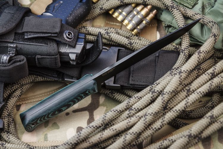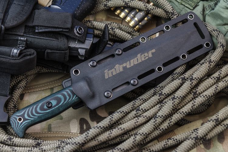 Нож Intruder является цельнометаллическим ножом, но при этом накладки из Micarta заменяемые, что большая редкость для фултангов.