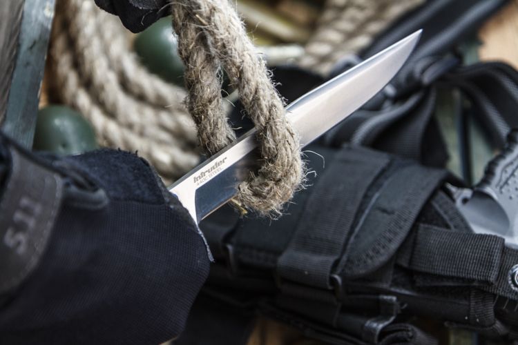 Понятно и по фото, что нож Интрудер обладает высокой проникающей способностью, и толщина обуха 4,5 мм только в помощь. Но когда нож приятно тяжелит руку, то становится даже немного не по себе, в нём ощущается опасность. Тем не менее для его ношения не требуется разрешительная документация, вся продукция сертифицирована.