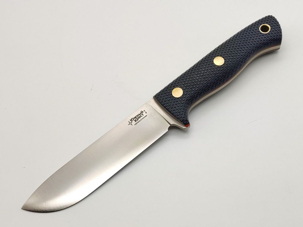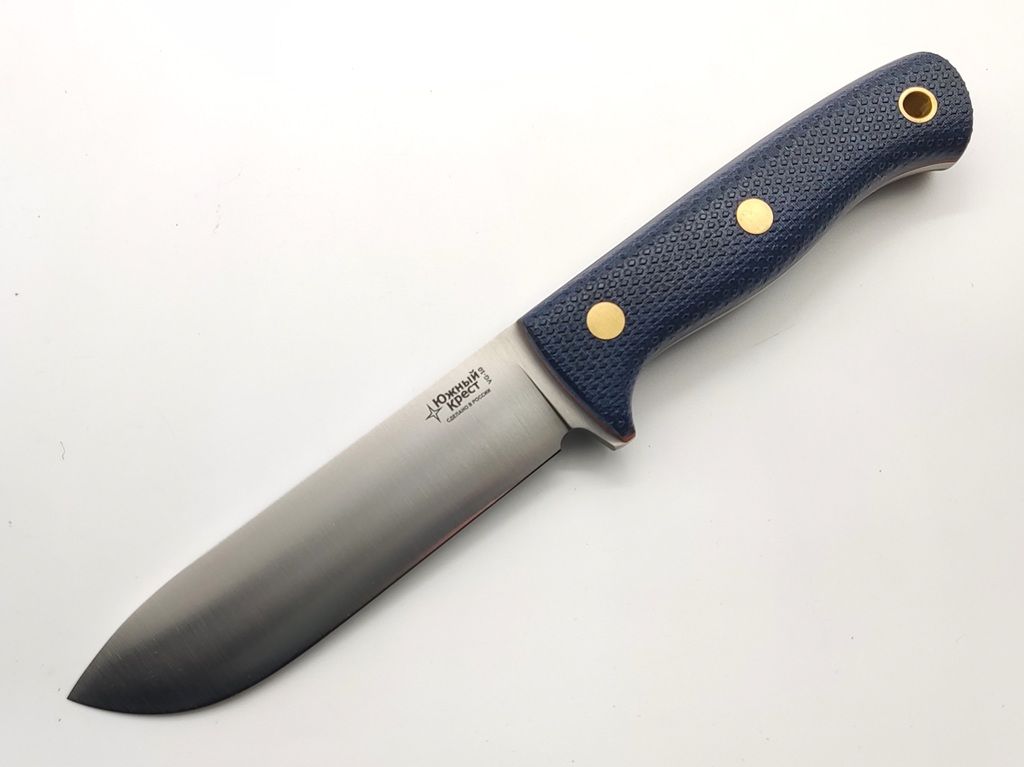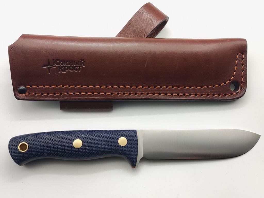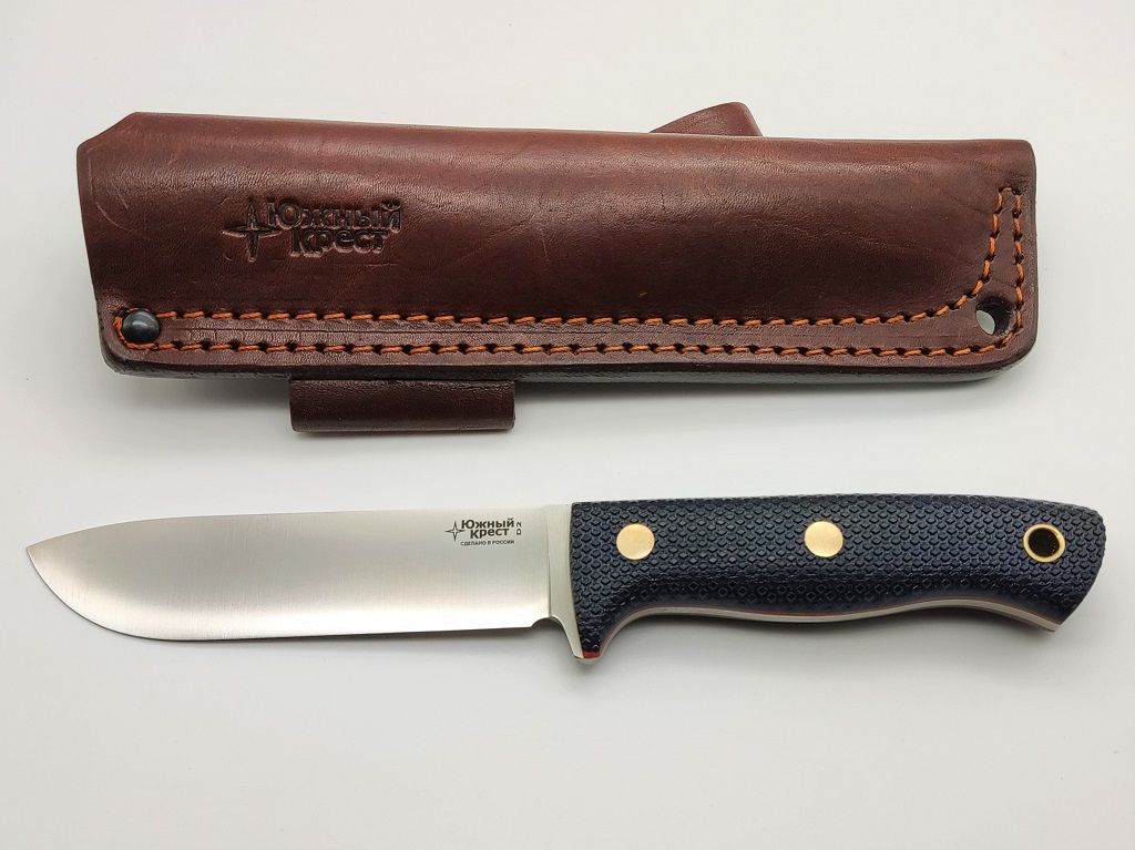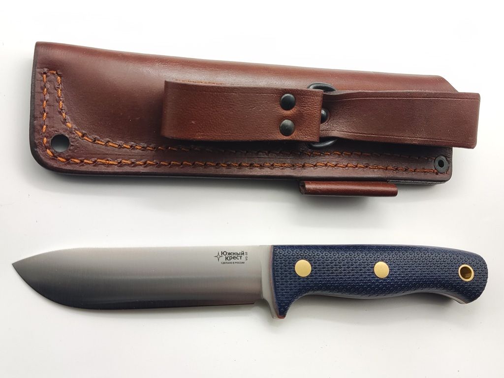 Нож Кедр - еще один бушкрафт в исполнении Южного Креста. Отличительной особенностью является значительная гарда, предохраняющая руку от случайного пореза при работе. На данном экземпляре реализована "линза в ноль", т.е. заточка конвекс начинается от обуха.