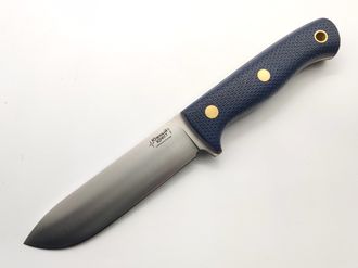 Micarta - отличный материал для рукояти ножа. Изготавливается из слоев ткани и бумаги, пропитанной синтетическими смолами. Материал часто используется в электротехнике. Легко обрабатывается и полируется. При этом микарта остается прочным материалом, не скользит в руке, имеет хорошую теплопроводность. Совершенно не впитывает влагу и стоек к агрессивным средам. Для того, чтобы рука не соскальзывала при работе, на накладки нанесена оружейная насечка. Как показывает практика, при такой обработке накладок рука не скользит даже в дождь и при попадании грязи.