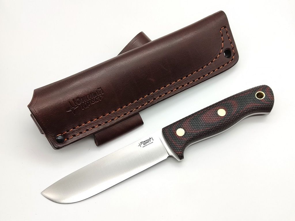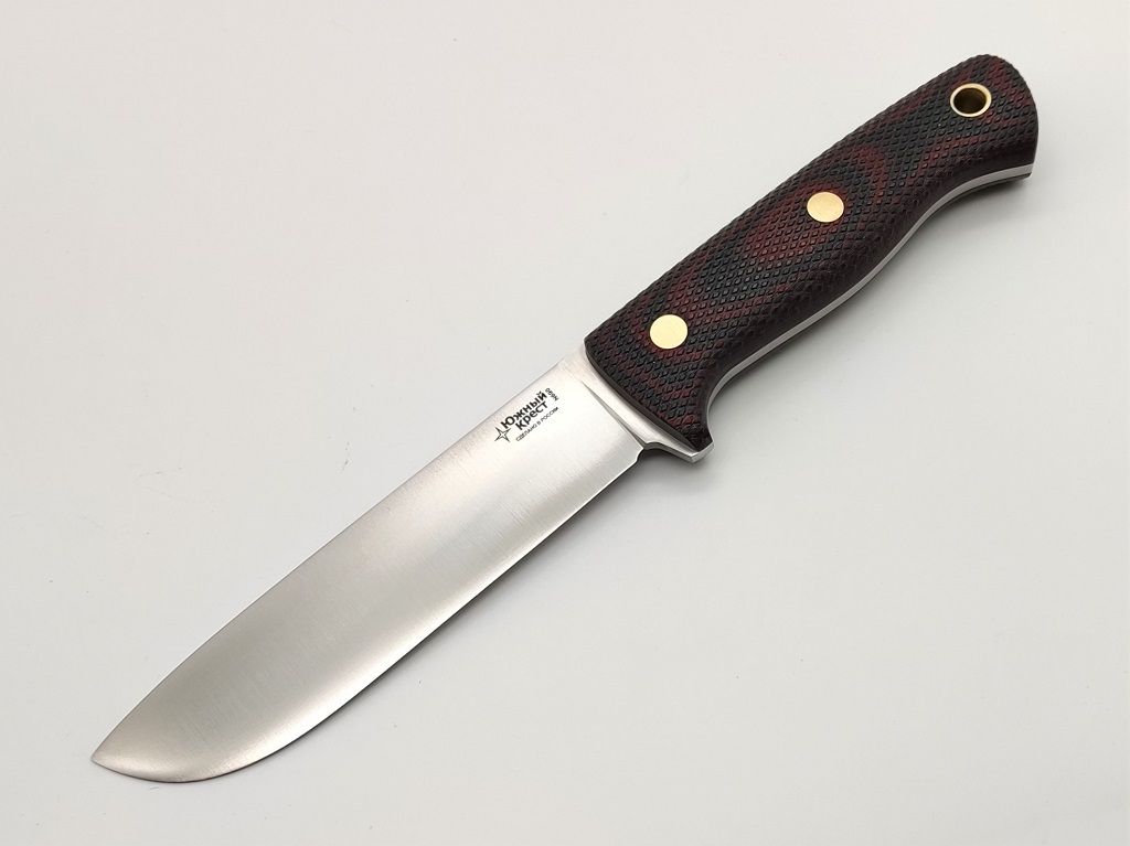 Нож Кедр L - еще один бушкрафт в исполнении Южного Креста. Отличительной особенностью является значительная гарда, предохраняющая руку от случайного пореза при работе. На данном экземпляре реализована "линза в ноль", т.е. заточка конвекс начинается от обуха.