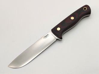Micarta - отличный материал для рукояти ножа. Изготавливается из слоев ткани и бумаги, пропитанной синтетическими смолами. Материал часто используется в электротехнике. Легко обрабатывается и полируется. При этом микарта остается прочным материалом, не скользит в руке, имеет хорошую теплопроводность. Совершенно не впитывает влагу и стоек к агрессивным средам. Для того, чтобы рука не соскальзывала при работе, на накладки нанесена оружейная насечка. Как показывает практика, при такой обработке накладок рука не скользит даже в дождь и при попадании грязи.