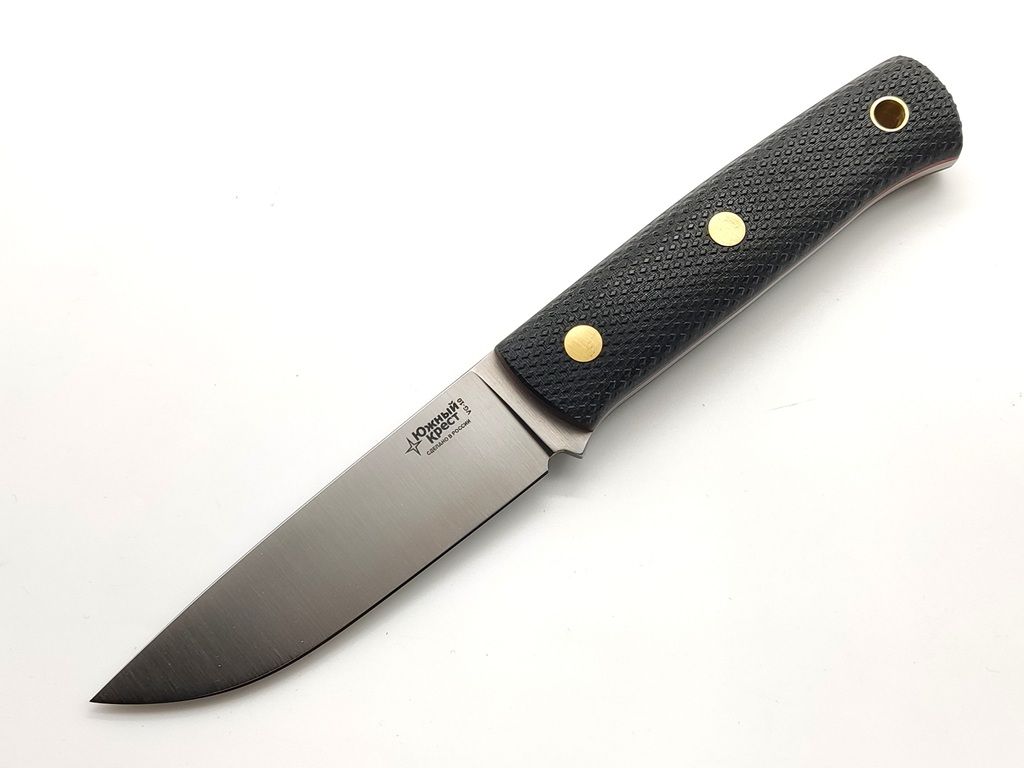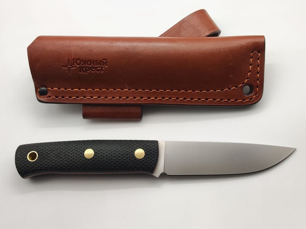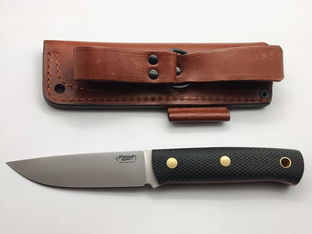 Крепкий разделочный нож среднего размера c оружейной насечкой на рукояти.