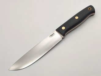 Micarta - отличный материал для рукояти ножа. Изготавливается из слоев ткани и бумаги, пропитанной синтетическими смолами. Материал используется в электротехнике, больше известен как гетинакс. Легко обрабатывается и полируется. При этом микарта остается прочным материалом, не скользит в руке, имеет хорошую теплопроводность. Совершенно не впитывает влагу и стоек к агрессивным средам. Подбор цвета и дизайна микарты делает нож красивым и привлекательным.