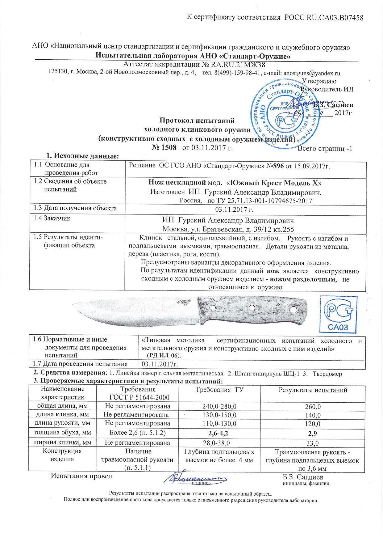 ОПИСАНИЕ НОЖА МОДЕЛЬ X