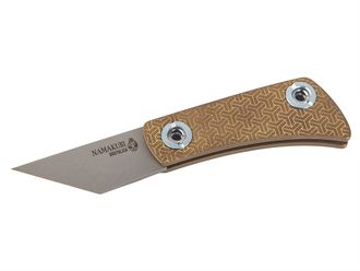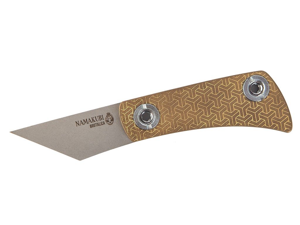Намакуби относится к серии Brass Friction Brutalica. Это компактный складной нож для EDC. Нож выглядит очень стильно благодаря необычному решению - в качестве материала рукояти используется только латунь и ничего более. На латунные плашки нанесена лазерная узорчатая гравировка. Namakubi станет отличным подарком для тех, кто увлекается восточной культурой, поделками и просто коллекционирует необычные ножи.