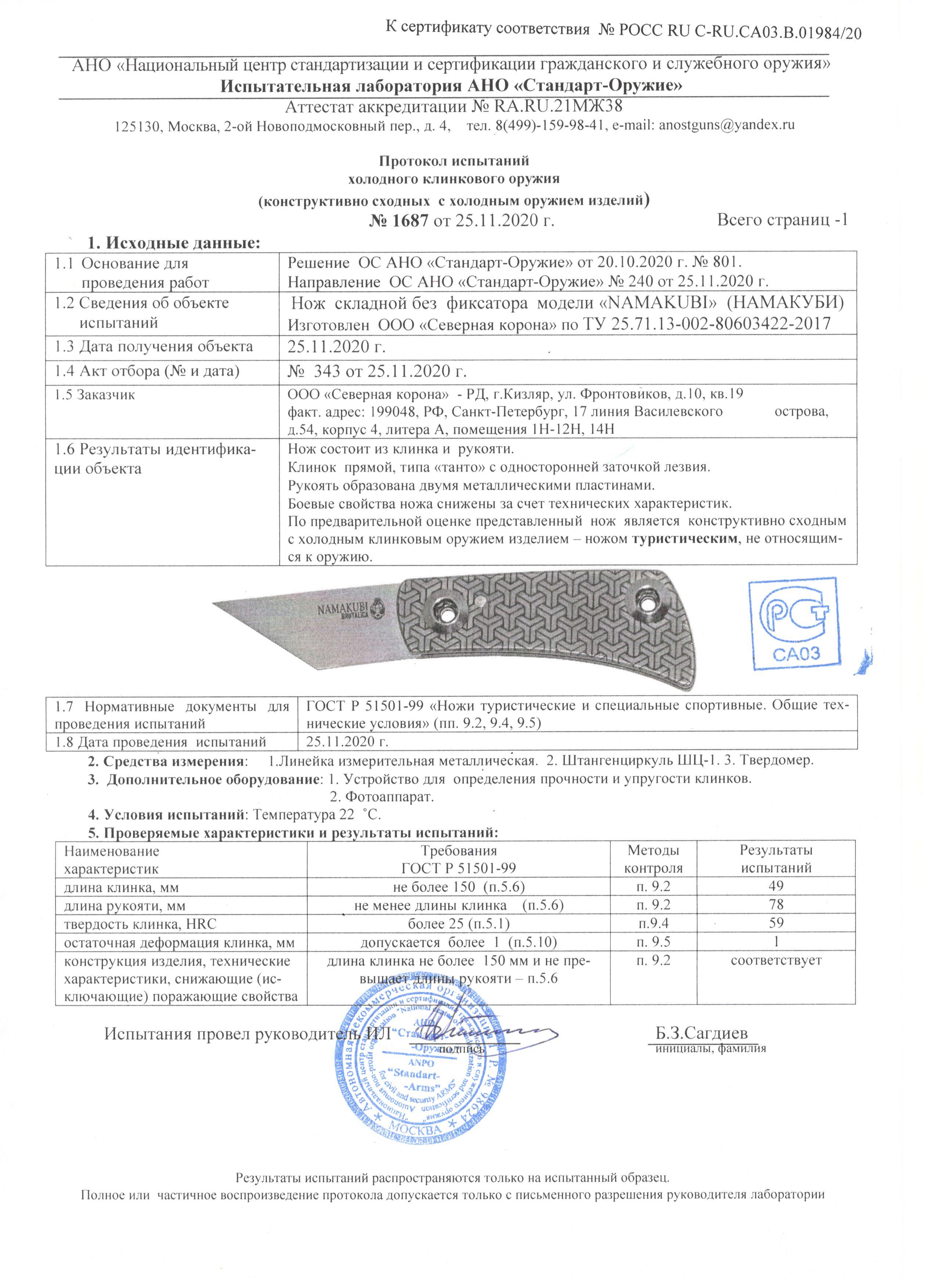 Складной нож NAMAKUBI Brutalica Knives не является холодным оружием.