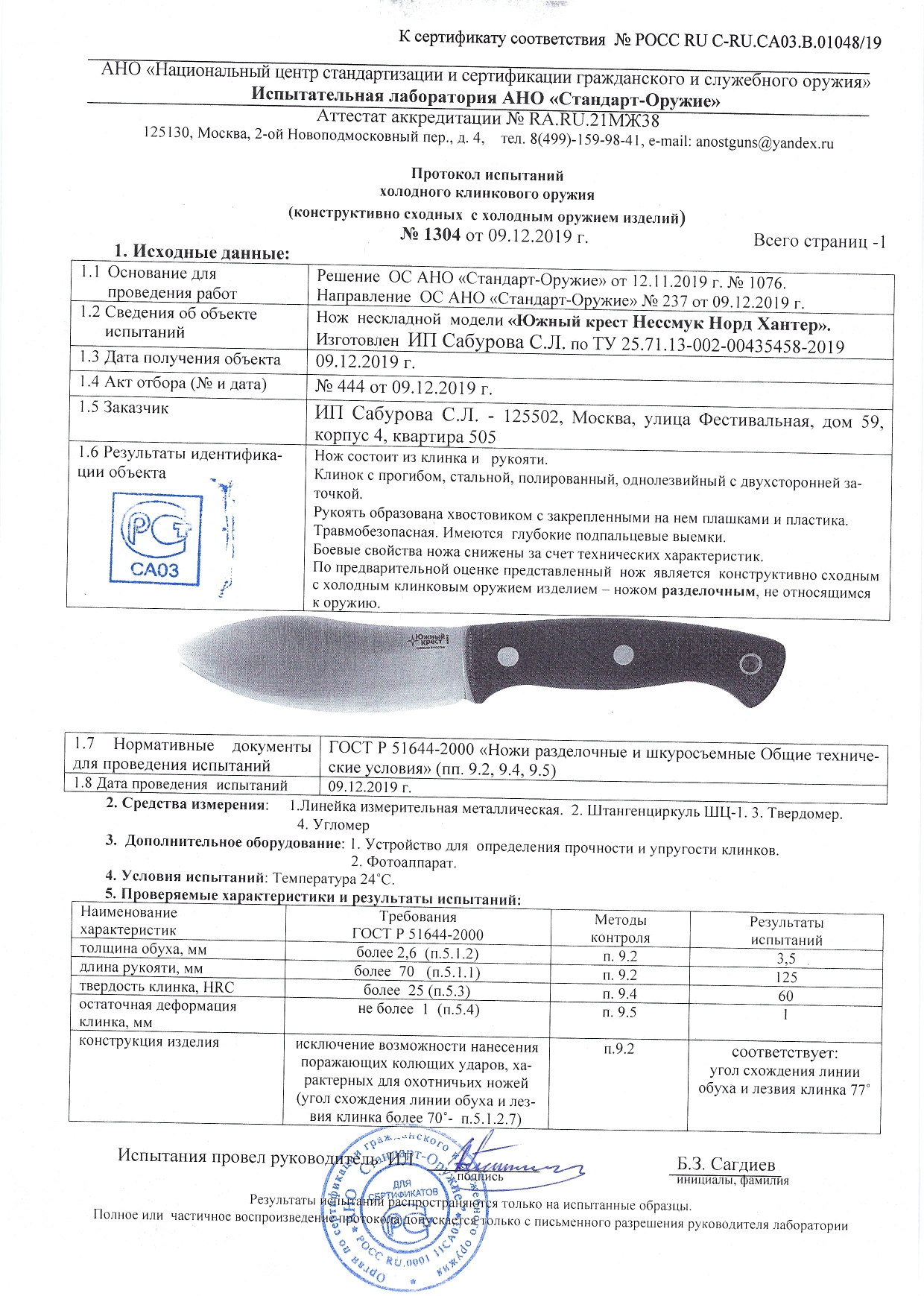 Нож Nessmuk Nord Hunter не является холодным оружием.