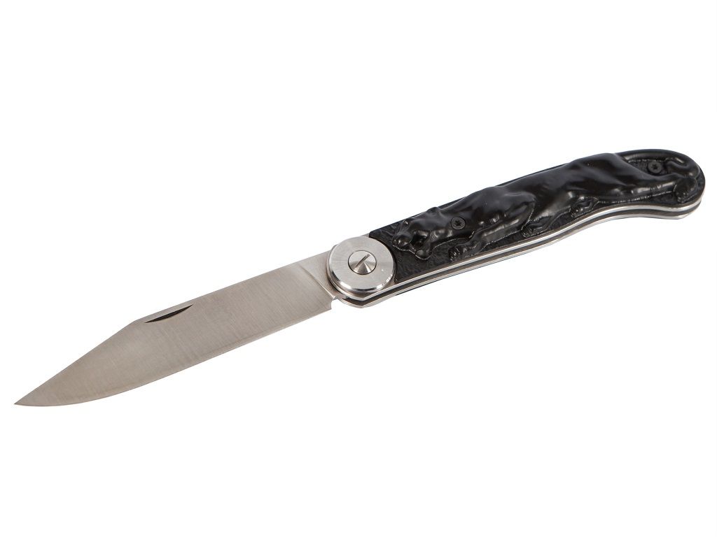 Нейлон часто используется для изготовления бюджетных ножей. Этот пластик очень эластичный и практически никогда не трескается от ударов и падений. На накладках воспроизведен рельефный рисунок пантеры, как и было это ранее на прототипе из СССР.