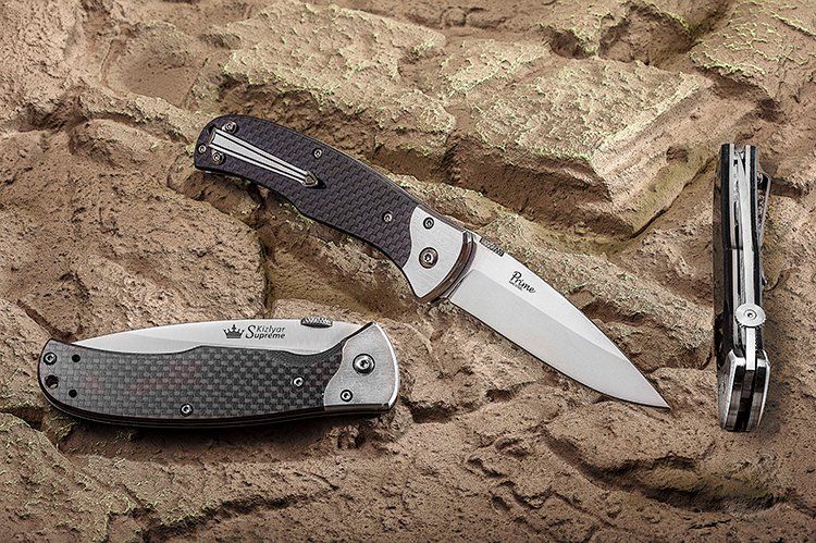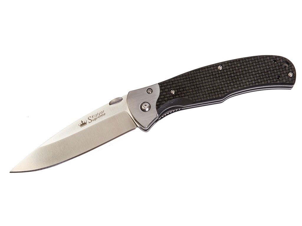 Клинок правильной классической формы и острым кончиком сделан из серьезной стали D2, которая обеспечивает долгую работу без правки. Толщина по обуху почти 3 мм А металлические притины гарантируют долгую службу механизму раскрывания.