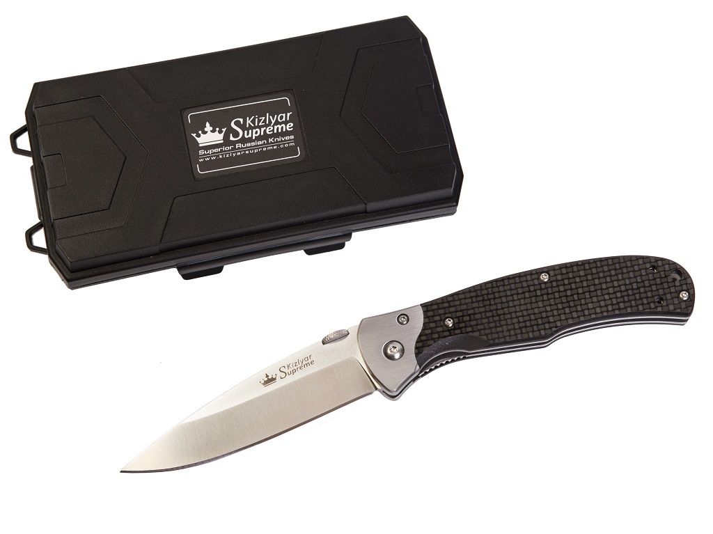 Рукоять из углепластика Carbon, сверхпрочного и сверхлегкого синтетического материала. Карбоновые панели широко применяются в самолетостроении и при производстве гоночных болидов. Каркас рукояти - лайнеры, необычно толстые, можно сказать усиленные. Отсюда и вес ножа: мощные лайнеры, хороший клинок, притины придают ножу уверенность и надежность.