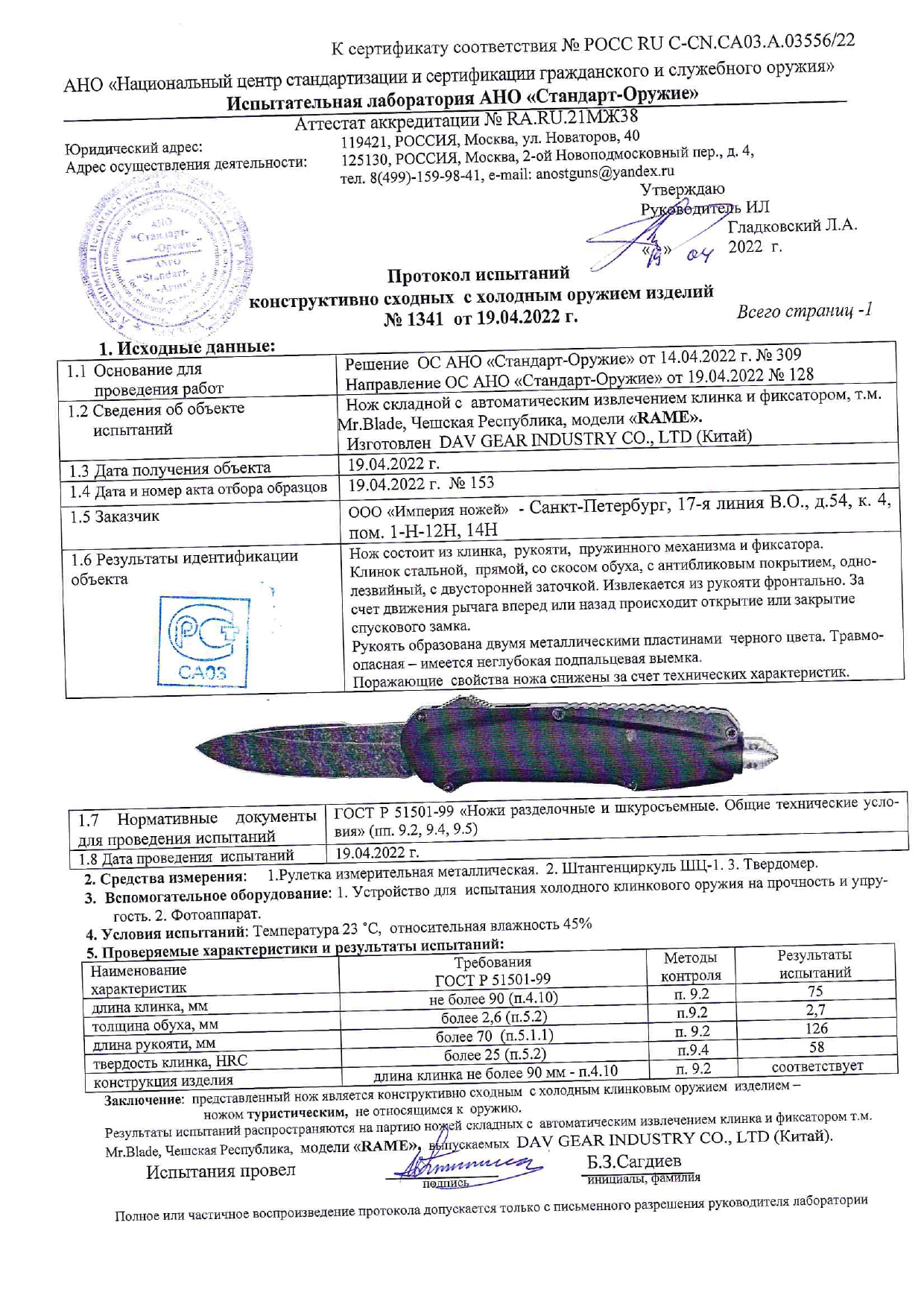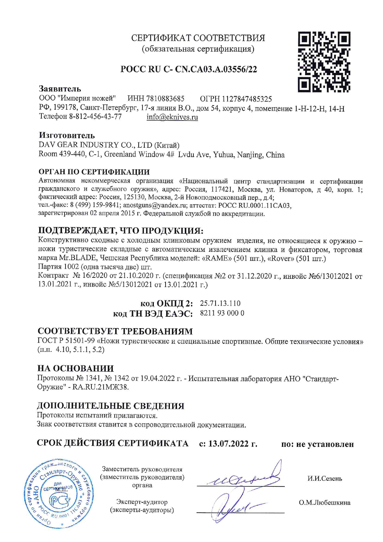 Фронтальный нож Mr. Blade Rame не является холодным оружием.
