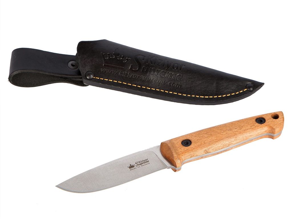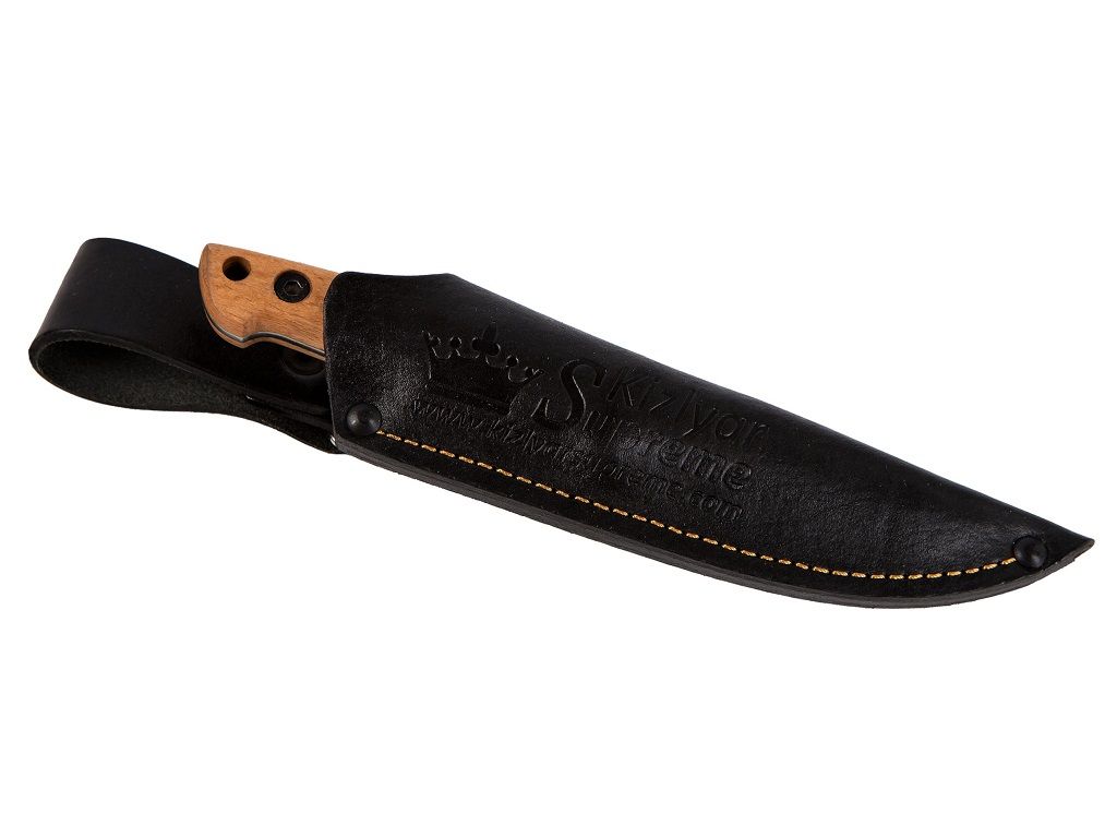 Небольшой нож Santi поставляется в комплекте с ножнами из натуральной кожи.