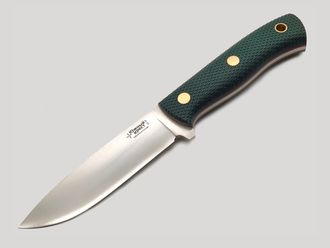 Micarta - отличный материал для рукояти ножа. Изготавливается из слоев ткани и бумаги, пропитанной синтетическими смолами. Материал используется в электротехнике, больше известен как гетинакс. Легко обрабатывается и полируется. При этом микарта остается прочным материалом, не скользит в руке, имеет хорошую теплопроводность. Совершенно не впитывает влагу и стоек к агрессивным средам. Подбор цвета и дизайна микарты делает нож красивым и привлекательным.
