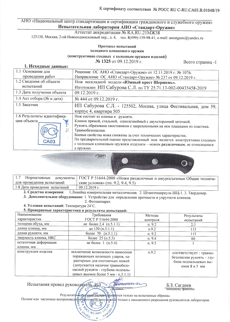 | Материал рукояти | Micarta с насечкой |