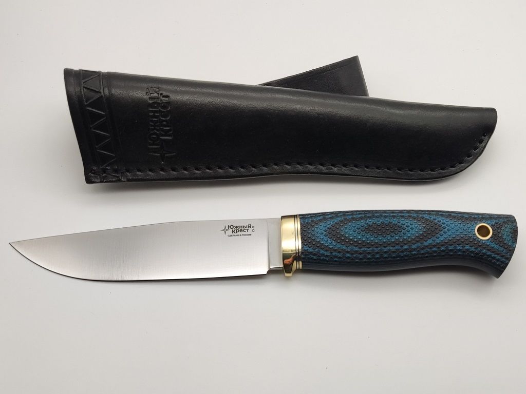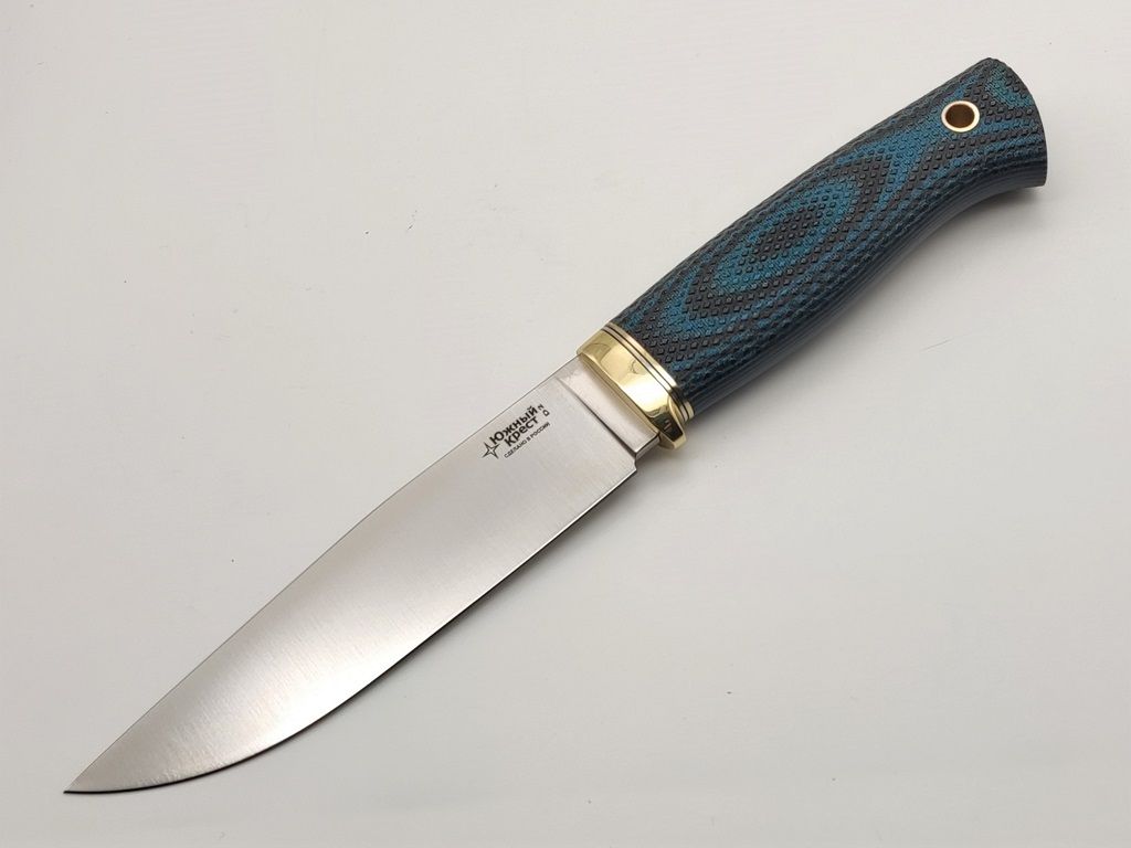 Micarta - отличный материал для рукояти ножа. Изготавливается из слоев ткани, пропитанной синтетическими смолами. Материал часто используется в электротехнике, больше известен как гетинакс. Легко обрабатывается и полируется. Микарта не впитывает воду, нейтральна к агрессивным средам, не меняет свойств при морозе и высоких температурах. Подбор цвета и дизайна микарты делает нож красивым и привлекательным. Ромбовидная насечка на рукояти является фирменной фишкой Южного Креста.