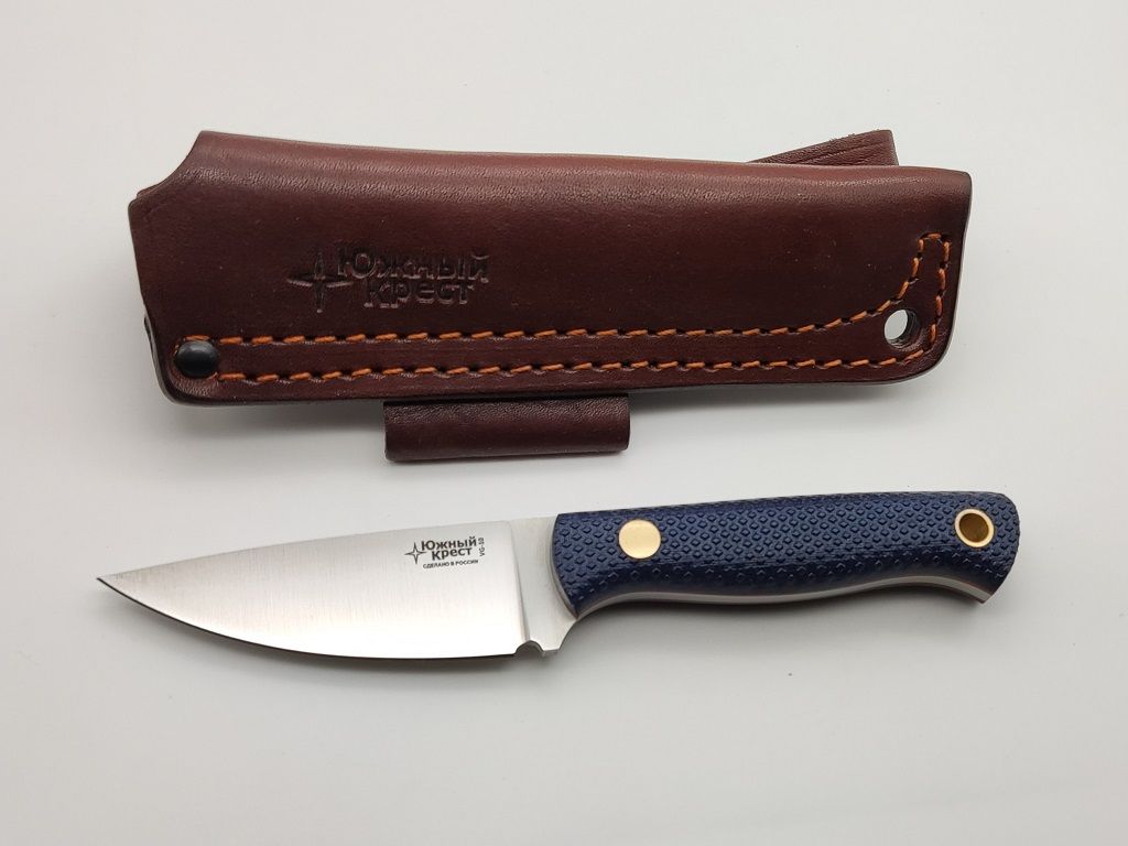 Micarta - отличный материал для рукояти ножа. Изготавливается из слоев ткани, пропитанной синтетическими смолами. Материал часто используется в электротехнике. Легко обрабатывается и полируется. Микарта не впитывает воду, нейтральна к агрессивным средам, не меняет свойств при морозе и высоких температурах. Подбор цвета и дизайна микарты делает нож красивым и привлекательным. Оружейная насечка на рукояти является ноу хау Южного Креста.
