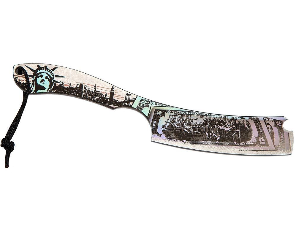 Конструктивно бритва Wall Street является цельнометаллическим ножом без накладок на рукояти. С обоих сторон клинок и рукоять украшены цветной гравировкой с символами деловой Америки. Все углы зашлифованы с большим радиусом, бритву удобно держать в руке, рукоять не врезается в ладонь. Имеется темлячное отверстие, с небольшим темлячком бритву удобнее извлекать из чехла.
